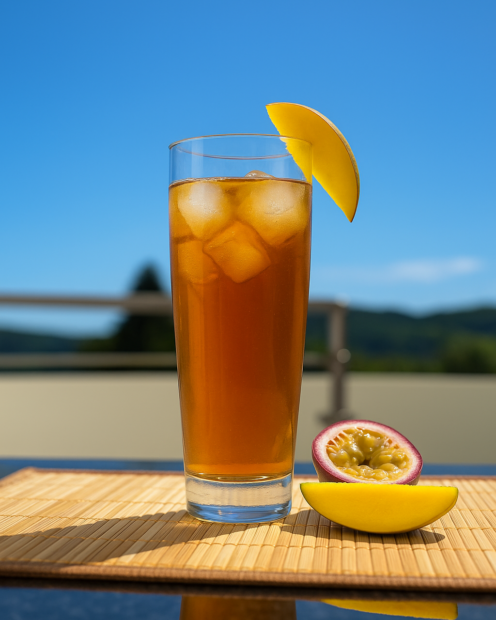 Tropisch-fruchtiger Genuss trifft auf tiefe Schwarztee-Noten: Mango und Maracuja sorgen für eine spritzig-exotische Fruchtigkeit, während ein Hauch natürliches Sahne-Aroma dem Tee eine cremig-sanfte Tiefe verleiht. Der Assam-Schwarztee bringt eine kräftige, leicht malzige Basis, perfekt ausbalanciert durch Orangenschalen und ätherisches Orangenöl. Eiskalt ein echtes Highlight – wie ein Sommerurlaub im Glas.