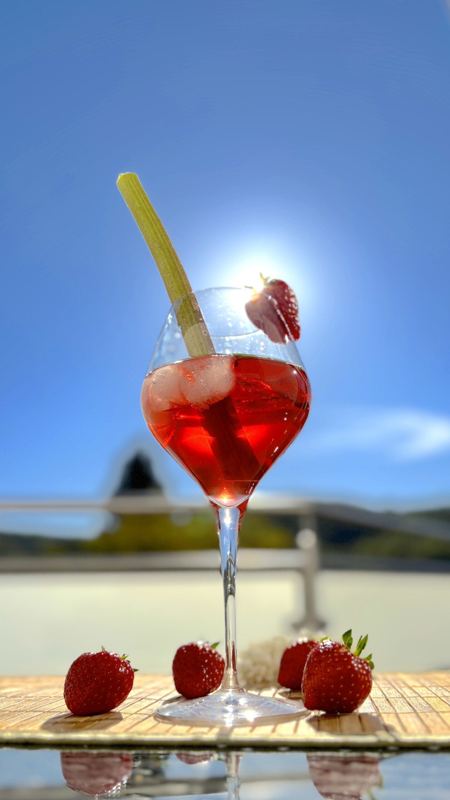 Süß-saftige Erdbeeren verschmelzen mit der feinen Säure von Rhabarber zu einem wunderbar ausgewogenen Geschmackserlebnis. Begleitet von fruchtigem Apfel, tropischer Ananas und der zart-herben Tiefe des Hibiskus entsteht ein lebendiger Mocktail mit sommerlicher Frische und natürlicher Süße.