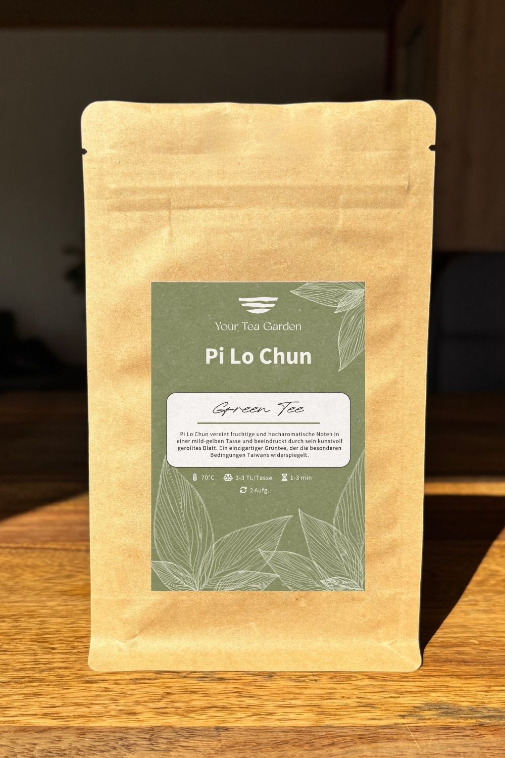 Übersetzt steht „Pi Lo Chun“ für die „Grüne Frühlingsschnecke“. Chinesen geben ihren Tees gerne malerische Namen, die sich auf die Form der verarbeiten Blätter beziehen. Obwohl die Ursprünge von Pi Lo Chun in China liegen, hat sich der Tee in Taiwan zu einer eigenständigen Spezialität entwickelt. Durch die spezifischen Bodenverhältnisse und die Expertise der taiwanesischen Teamaster hat sich diese Sorte zu einem unverwechselbaren Grüntee mit tiefer Fruchtigkeit und einer einzigartigen, geschmacklichen Struktur herausgebildet. Die kunstvolle Herstellungsmethode, bei der die Teeblätter sorgfältig von Hand zu kleinen Spiralen gerollt werden, zeugt von höchster Handwerkskunst und bringt das volle Aromenspektrum des Tees zur Geltung.