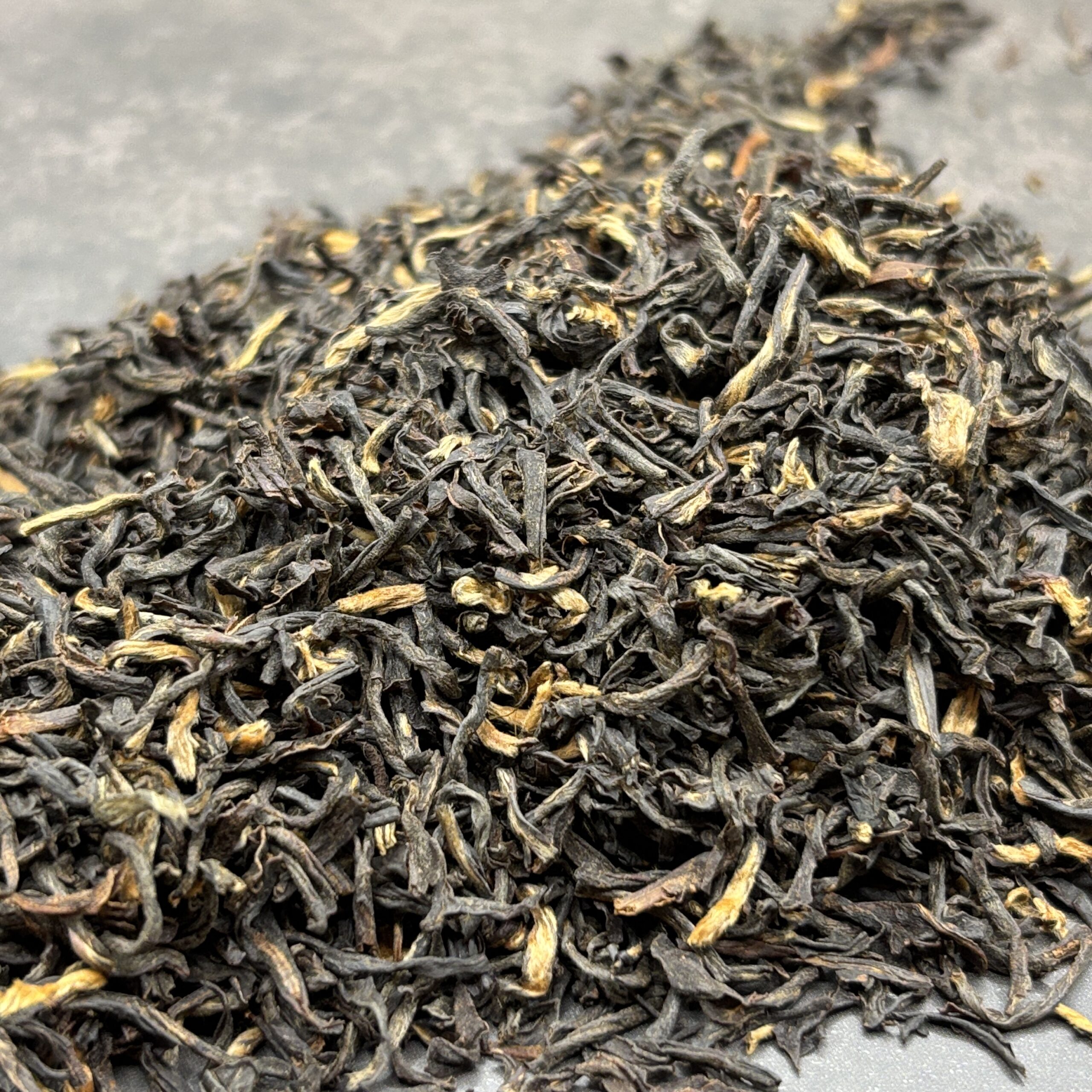 Dieser Assam ist ein Tee der zweiten Pflückung (Second Flush) vom renommierten Mokalbari East Estate, das seit fast 100 Jahren für seine Spitzentees bekannt ist. Die Bezeichnung FTGFOP1 („Finest Tippy Golden Flowery Orange Pekoe“) steht für die hohe Blattqualität und deutet auf die feinsten, tippigen Blätter hin, die dem Tee sein komplexes Aroma und die für Assam-Tees typische Fülle verleihen. Das drahtige, bunt gemusterte Blatt ist ein Zeichen der sorgfältigen Verarbeitung, die dem Tee seine charakteristische malzige Opulenz und Würze verleiht.