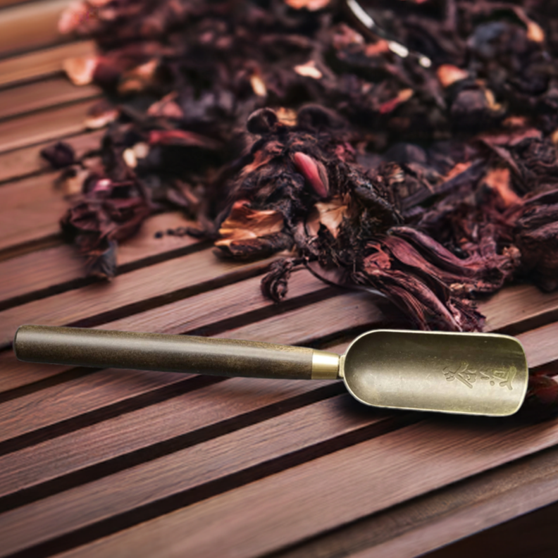 Die hochwertige Messing-Schaufel mit edlem Ebenholz-Griff ist perfekt zum stilvollen Dosieren von Tee. Ihre Größe von 180 x 28 mm macht sie ideal auch für die Entnahme aus großen Tee-Verpackungen.